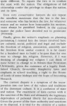 The writer places great emphasis on the obeyance of the law as a duty related to citizenship. His thoughts exhibit a confusion between the concepts of the state and the nation. To acknowledge the authority of the established system of government and obey its laws is one thing; but to ask that one accept the prevailing form of life and values is quite different. To equate the two is to confuse the state with the nation. The obligations of full citizenship confer the privilege to shape the nation, and its laws.